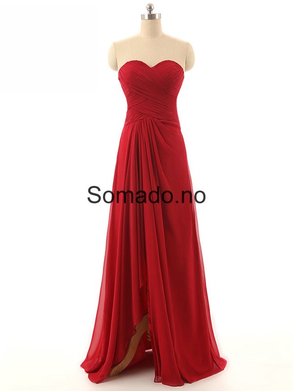 Det perfekte eksempelet på asymmetri er One Shoulder Silky Knit Long Dress, som er tilgjengelig i rødt eller turkis med et sidespalteskjørt og et stoff blomster-detaljert bodice. Den brennende røde Strapless Stretch Satin Kjole med Side Shirring og Layered Skjørt vakkert flatere fyldigere figurer. Og hvis du vil blande tradisjonen med en skvett teft, er Black and White Mesh Prom Gown en konvensjonell svart stroppeløs silhuettkjole med en hvit sidegardin ruffle.